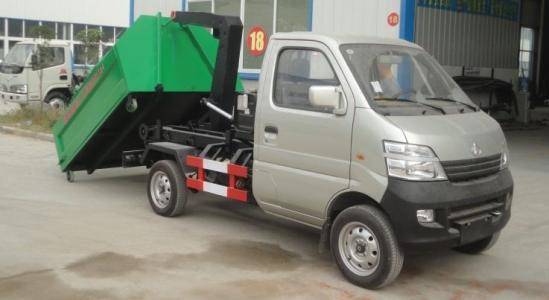 该车整车短,轴距小(2800mm轴距),机动灵活,厢可自吊上放下,可自行倾倒,上下一次工作循环时间≤50S。该车的特点是一个车能配多个厢,能实现一台车与多个厢联合作业,循环运输,充分了车辆的运输能力。特别适用于小区、城镇环卫部门使用。